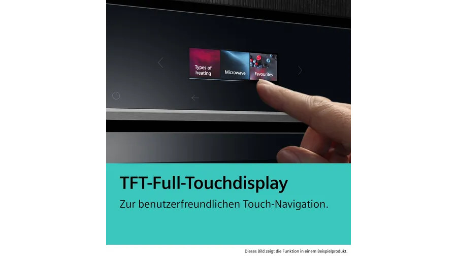 Với cấu trúc menu thân thiện với người dùng và thao tác chạm, việc vận hành màn hình cảm ứng hoàn toàn TFT rất đơn giản và trực quan. Hướng dẫn rõ ràng thông qua menu toàn diện giúp bạn phát huy hết tiềm năng của lò nướng.