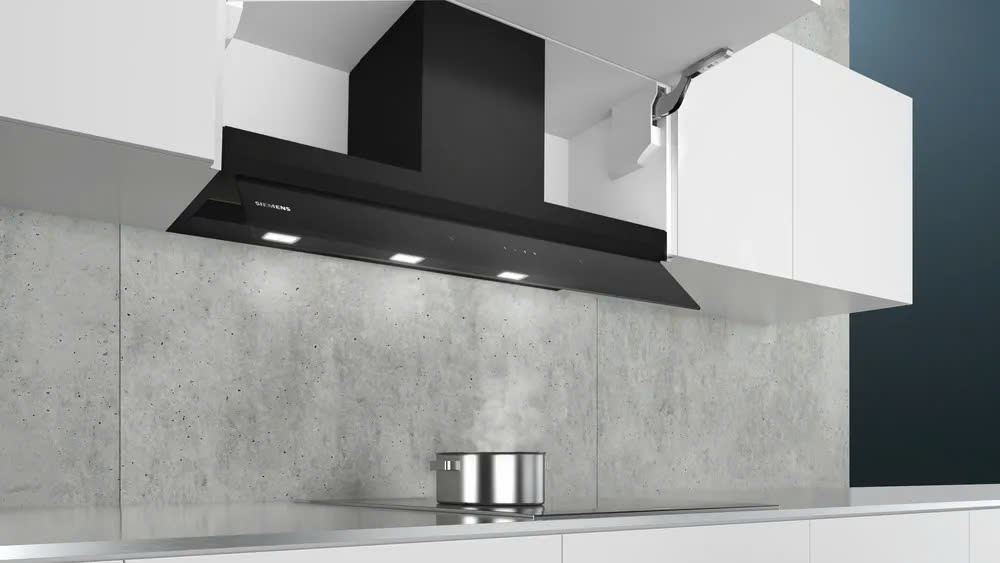 Máy hút mùi âm tủ Siemens LJ97BAM60 iQ500 90cm – Kính đen là sự kết hợp giữa thiết kế táo bạo và tính thực dụng hàng ngày. Với lớp hoàn thiện bằng kính đen nổi bật và hình bóng thanh lịch, tiết kiệm không gian, máy mang đến nét hiện đại cho căn bếp của bạn trong khi vẫn giữ mọi thứ hoạt động dễ dàng. Được thiết kế kín đáo dưới tủ, máy cho phép bạn tận hưởng tầm nhìn rõ ràng và không gian lưu trữ thông minh, với mỗi bên thiết kế hình chữ T hỗ trợ tới 10kg đồ dùng nhà bếp cần thiết.