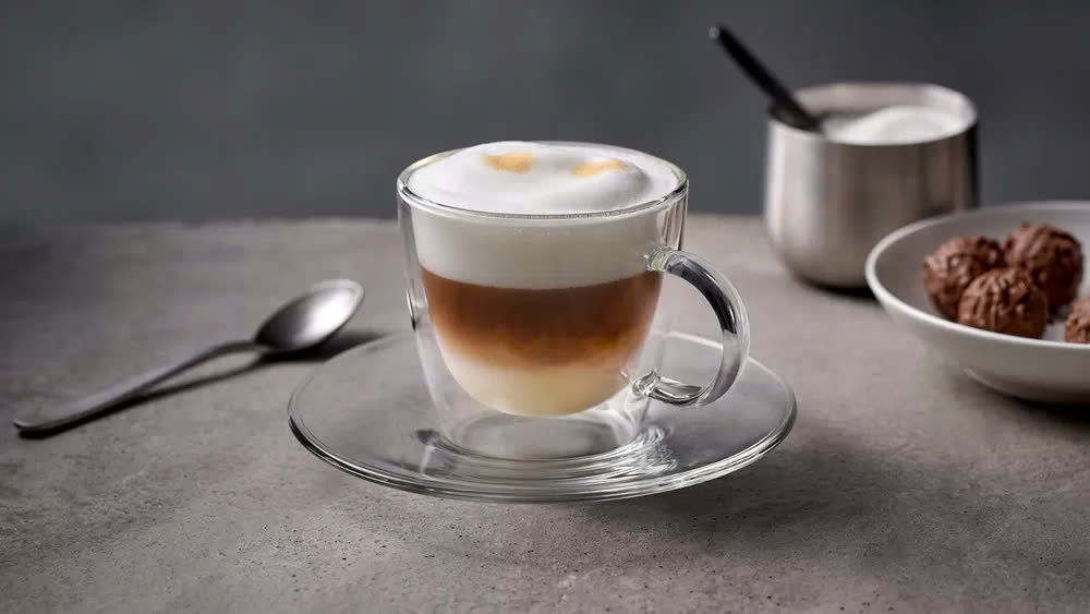 - Vòi phun cà phê có thể điều chỉnh độ cao để vừa với cả những chiếc ly Latte Macchiato bên dưới