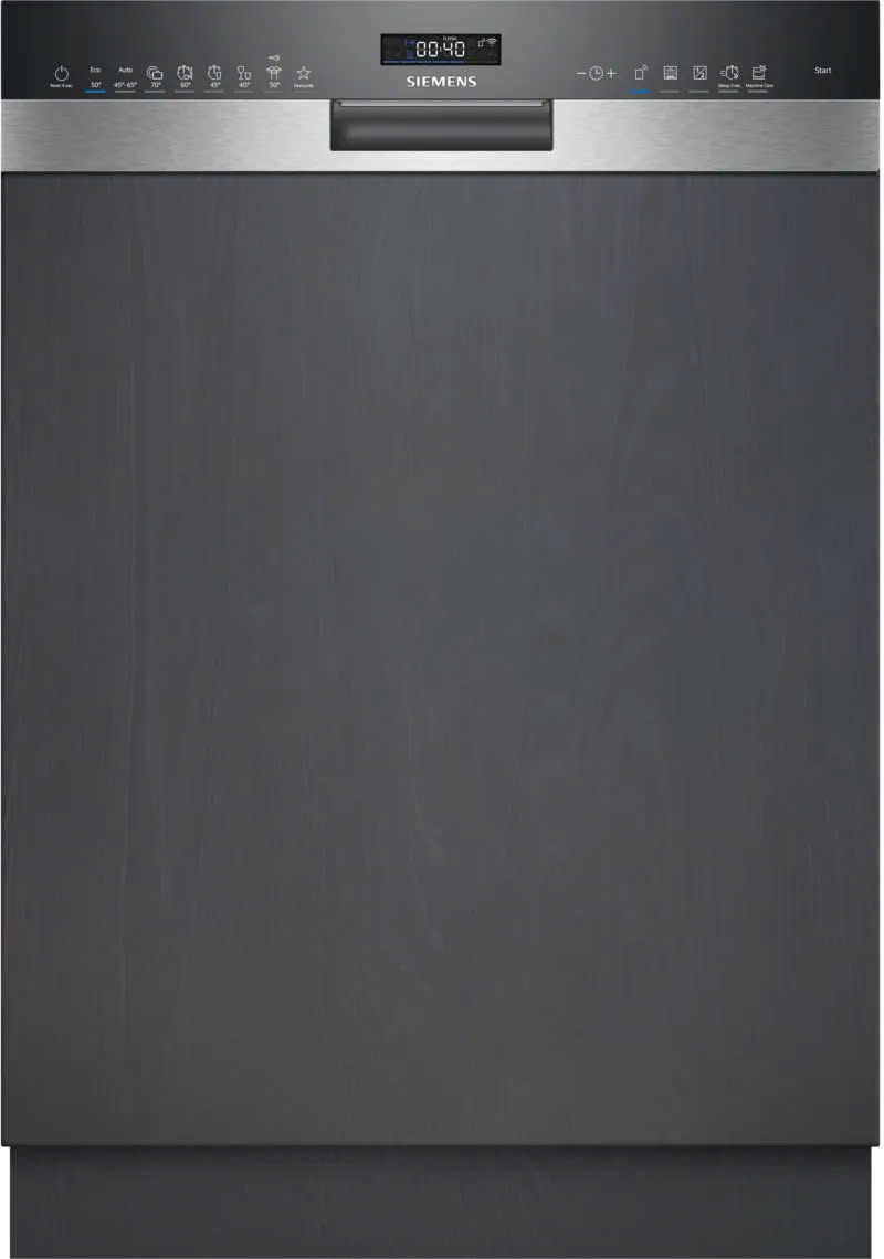 Máy rửa chén SN55ES12CE được thiết kế theo dạng âm bán phần (semi-integrated), phù hợp lắp đặt gọn gàng trong hệ tủ bếp, mang đến không gian bếp hiện đại, tinh tế và đồng bộ. Mặt trước bằng thép không gỉ kết hợp bảng điều khiển hiển thị rõ ràng giúp người dùng dễ thao tác, đồng thời tăng tính thẩm mỹ.