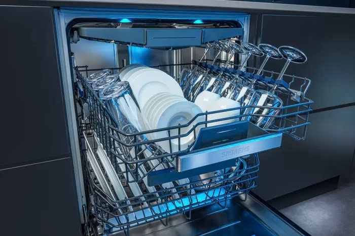 Mở cửa máy rửa chén để chiếu sáng bên trong bằng ánh sáng xanh. Đèn LED được tích hợp ở phía trên buồng sẽ tự động bật khi cửa mở và tắt khi cửa đóng.
