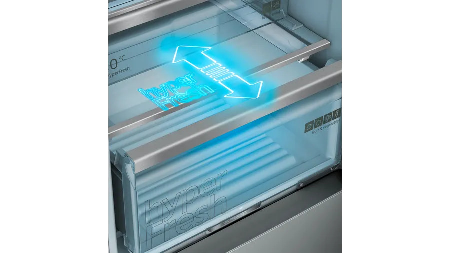 - HyperFresh <0°C>: nhiều không gian hơn cho trái cây và rau quả. Và một môi trường đặc biệt lạnh cho cá và thịt.