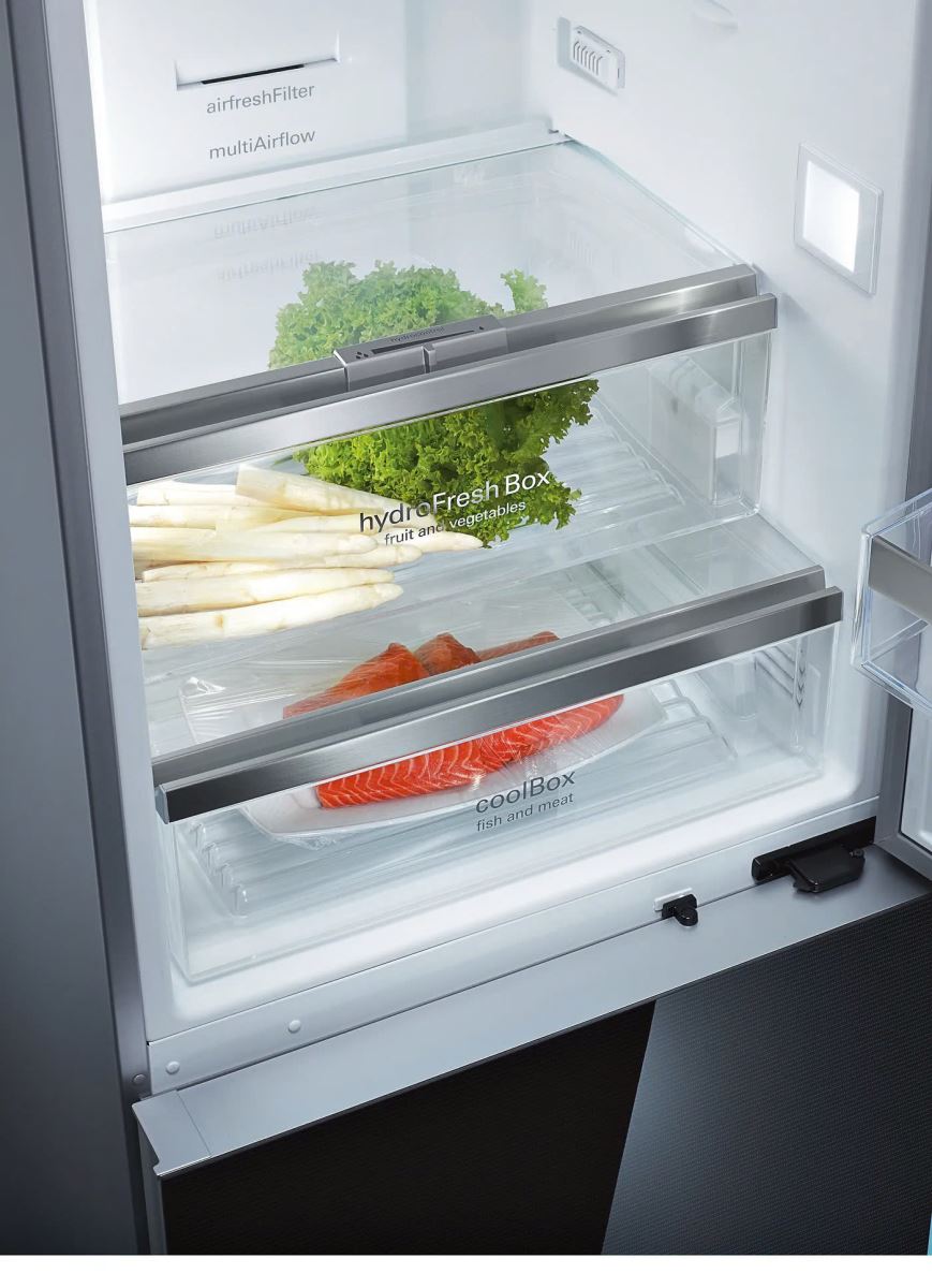 Có đủ không gian cần thiết để lưu trữ số lượng lớn trái cây và rau quả. Ngoài ra, còn có một ngăn đặc biệt dành cho thịt và cá có nguồn cung cấp khí lạnh riêng, giúp chúng luôn ở tình trạng hoàn hảo trong thời gian dài hơn. Nhiều không gian hơn và sắp xếp đồ trong tủ lạnh tốt hơn.